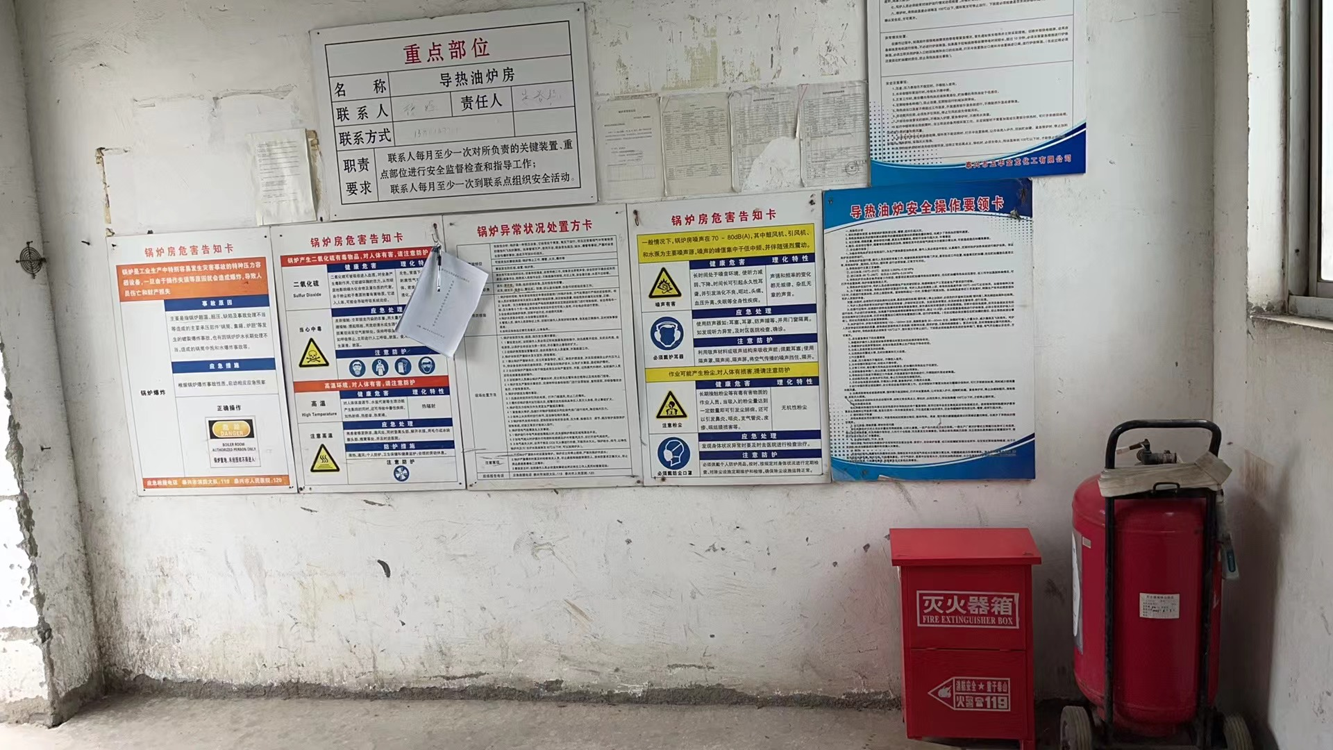 项目基本情况 | 泰兴市玉华金龙化工有限公司成立于2004年7月22日,位于泰兴市经济开发区中港路18号。公司法定代表人:毛荣庆,注册资本1500万元,厂区占地面积19040.5m2,其中建筑面积3339.56m2。现有员工28人,其中安全管理人员5人(含1名专职安全管理人员)。2015年4月,企业投资1689万元建成年产100吨间苯三酚、60吨 1,3,5-三甲氧基苯及副产 200吨氯化钾、60吨溴化钠生产线技改项目(一期年产100吨间苯三酚、副产200吨氯化钾),并领取了安全生产许可证,证号:(苏)WH安许证字[M00276],许可范围:间苯三酚(100t/a),有效期至 2026年3月2日。 根据《江苏省化工(危险化学品)企业安全风险评估和分级办法》(苏安监〔2017〕77号),经分析与评估,本公司安全风险等级为一般风险(黄色)。 根据省生态环境厅关于印发《江苏省生物质电厂与锅炉综合治理实施方案》的通知(苏环办[2022]321 号)的有关要求“加快推进4蒸吨/小时以下生物质锅炉淘汰工作,优先淘汰由燃煤改烧生物质的锅炉、难以稳定达到标准要求且技术改造成本较高的炉排炉(层燃炉),推广使用燃气锅炉、电锅炉等清洁能源锅炉”。为了响应省环保厅号召,满足清洁生产的要求,玉华金龙公司对导热油炉系统进行改造,将生物质导热油炉改成电加热导热油炉,附属的油气分离器、导热油高位槽、导热油低位槽、注油泵、循环泵等均不改变。改造后的导热油炉系统无废气排放,达到清洁生产的目的。 | |||
